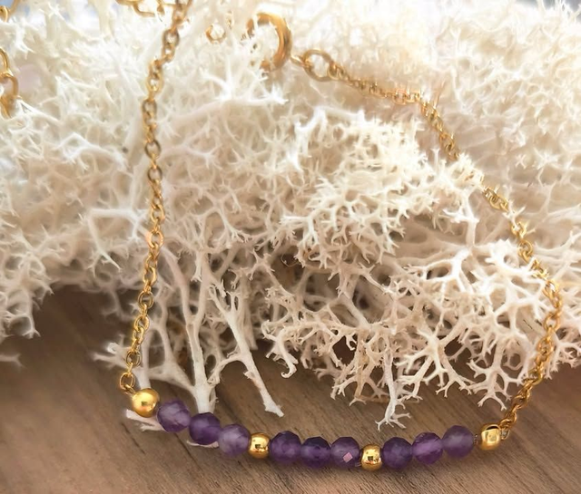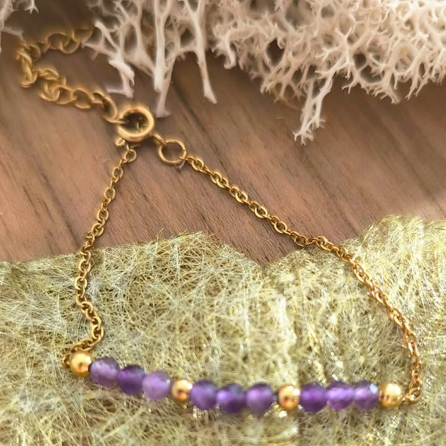 Un bracelet en perles d'améthyste ainsi que d'agrément en inox.